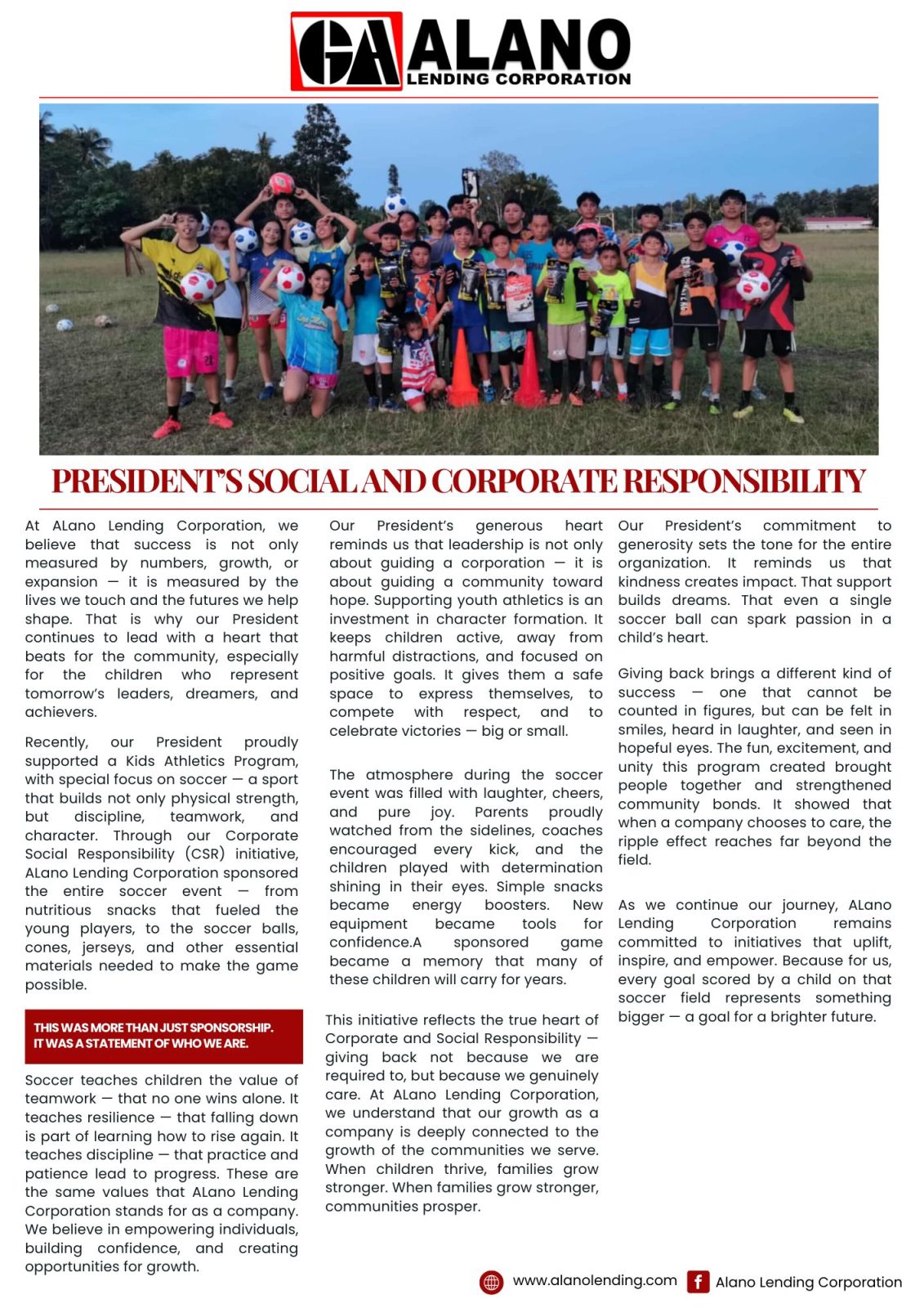 Kicking Hope Forward – President Gino’s Major CSR Program Brings Soccer to Kids
